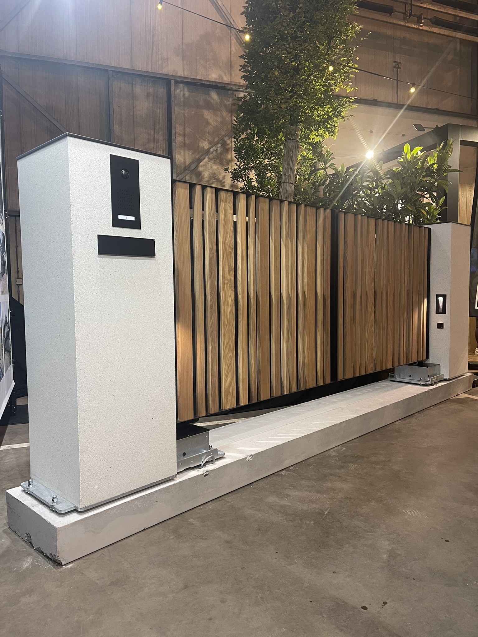 Het nieuwe poortmodel werd volledig voorgeassembleerd op prefab-fundatie, uitgerust met de intelligente automatisering- en besturingstechniek van DJS, en voorzien van architectonisch beton van Enjoy Concrete. De poortvleugels in aluminium en Afrormosia van Pouleyn zorgen voor een tijdloze uitstraling die past bij de meest veeleisende high-end projecten.